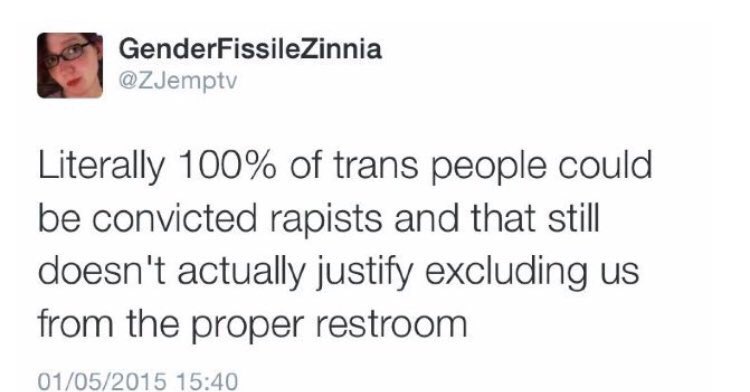 Note how there are also trans people in the thread who care not to bother women. It's not a homogeneous community, although the loudest and angriest misogynists seem to be leading it a lot of the time.